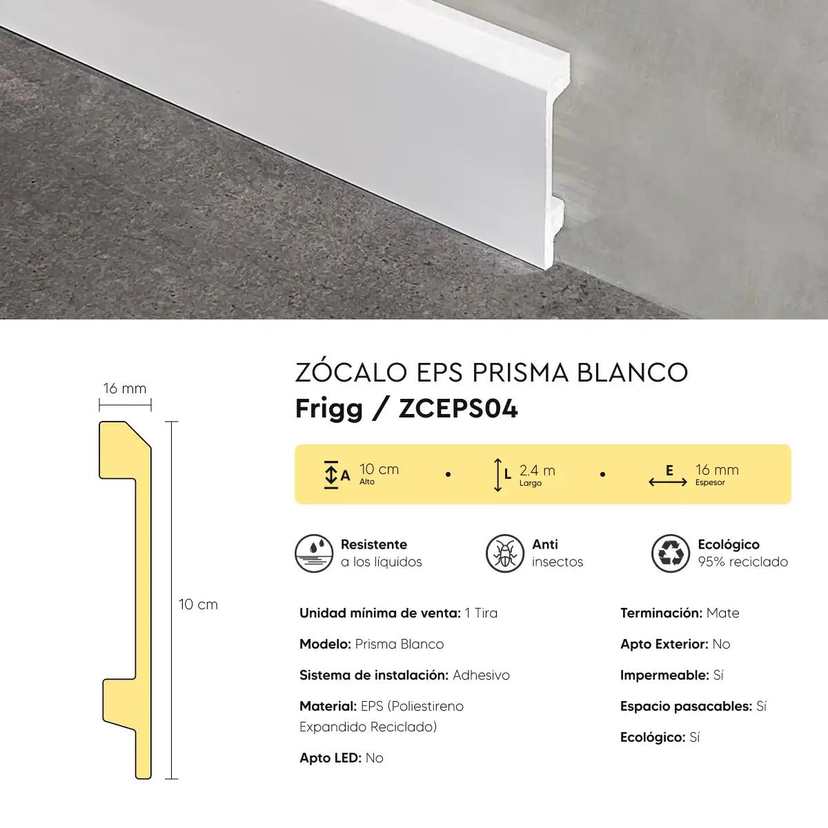 Zócalo Frigg Prisma Blanco EPS Antihumedad 10 cm
