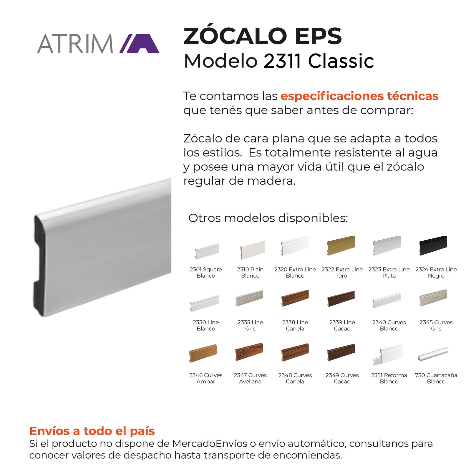 Zócalo de cara plana y terminación curva, que se adapta a todos los estilos.