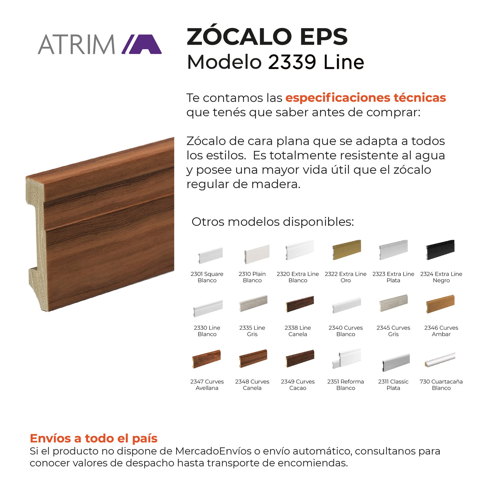 Zócalo de EPS Atrim Line 70 mm PVC Cacao Mate