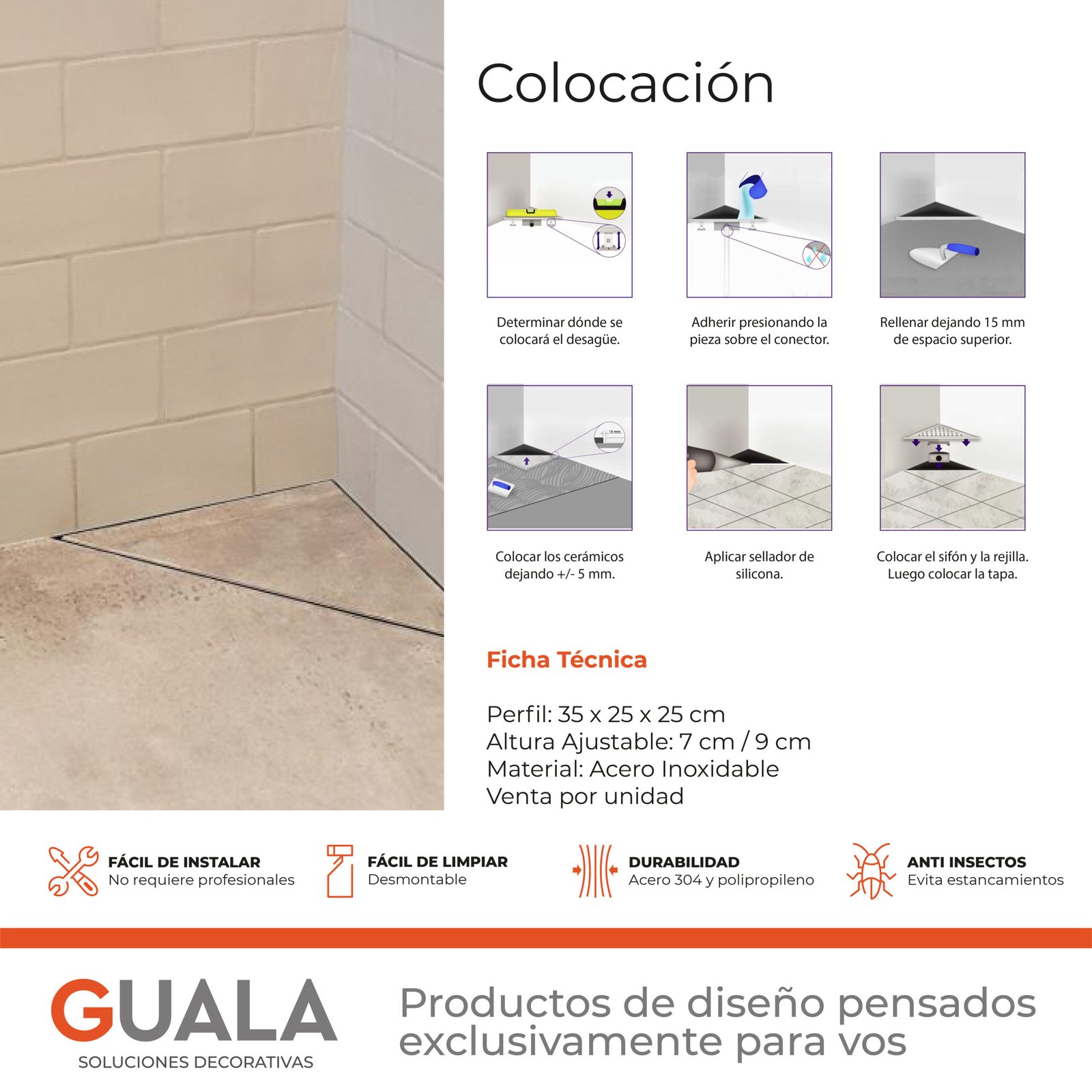 – Determine el lugar donde será instalado el desagüe triangular. Este modelo deberá situarse en una de las esquinas del box de ducha.