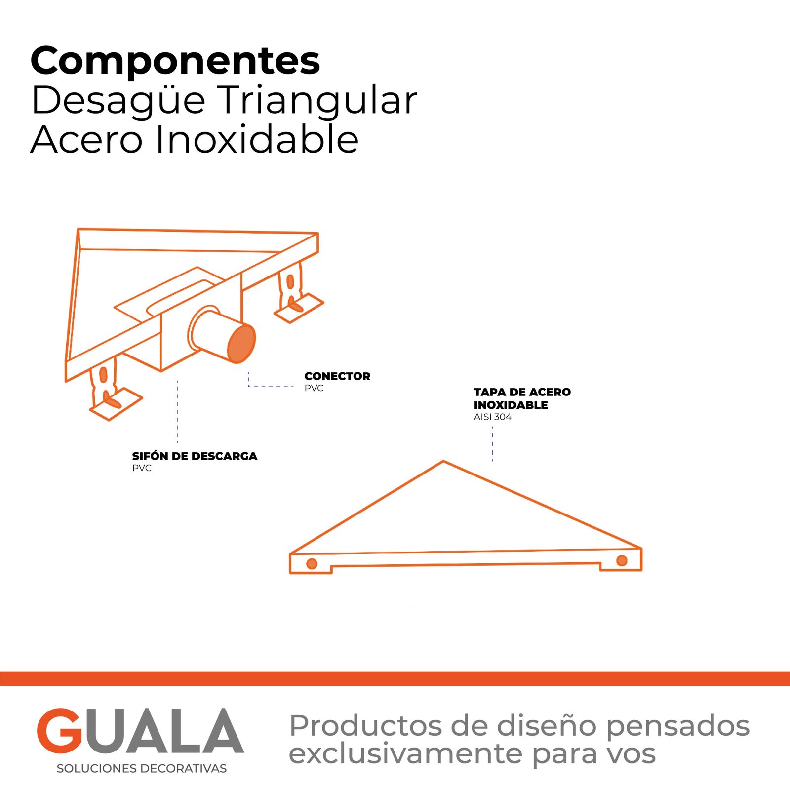 El desagüe triangular de acero inoxidable AISI 304 es la solución perfecta para quienes buscan un acabado elegante y funcional en su baño.