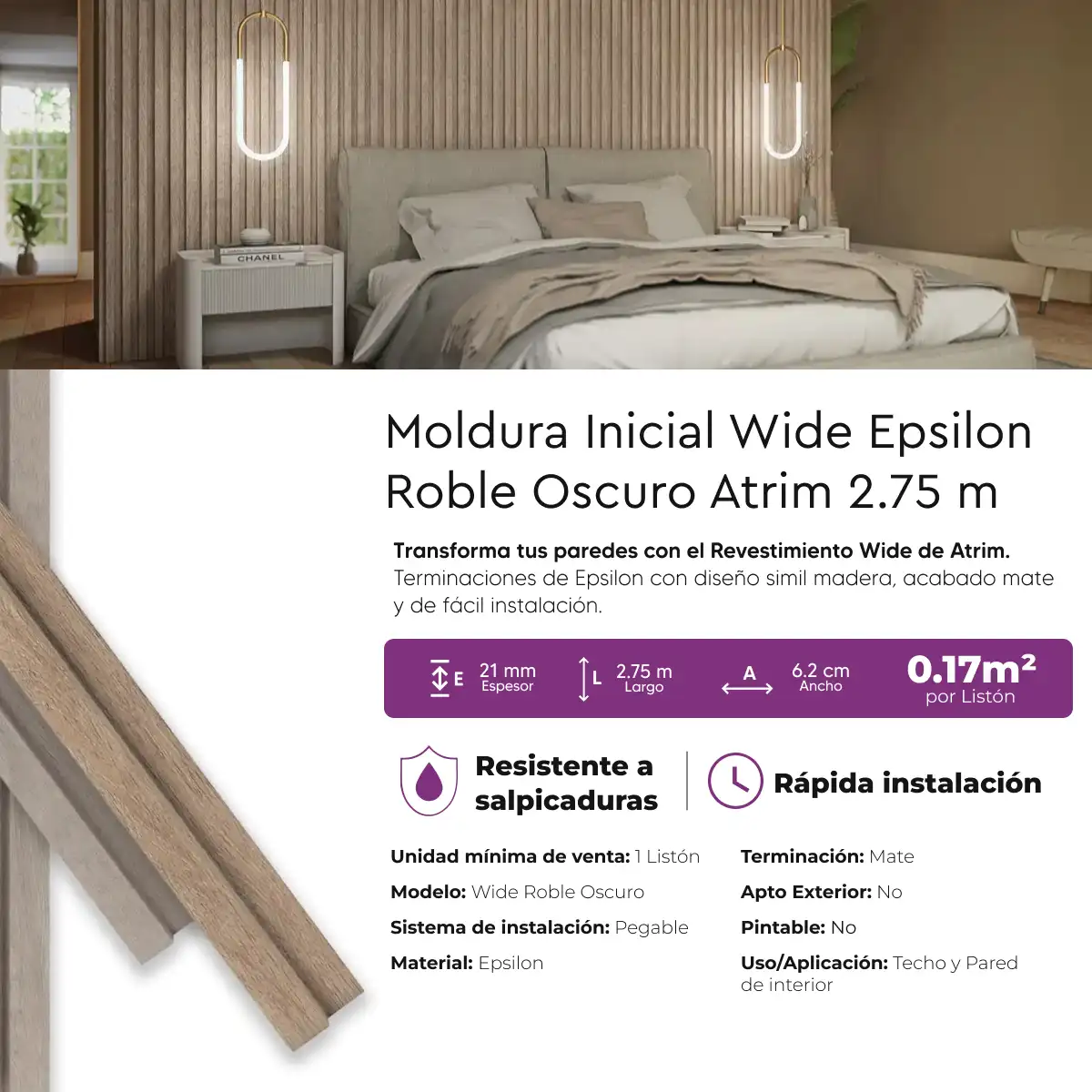 Moldura inicial del Revestimiento Atrim Wide Roble Oscuro de EPS