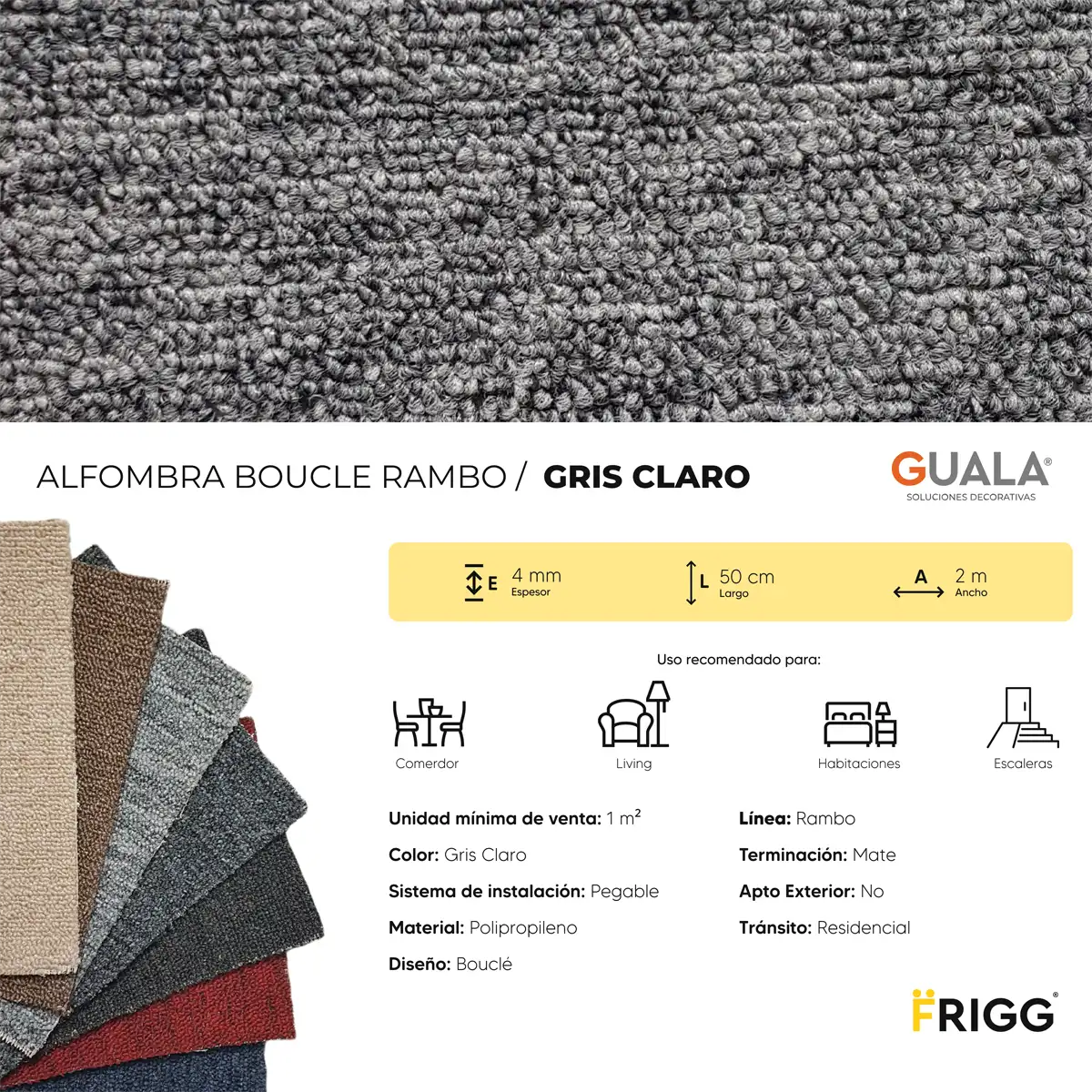 Be the first to review “Alfombra Bouclé Frigg Floring Rambo 4 mm Gris Claro 1m²” Cancel reply