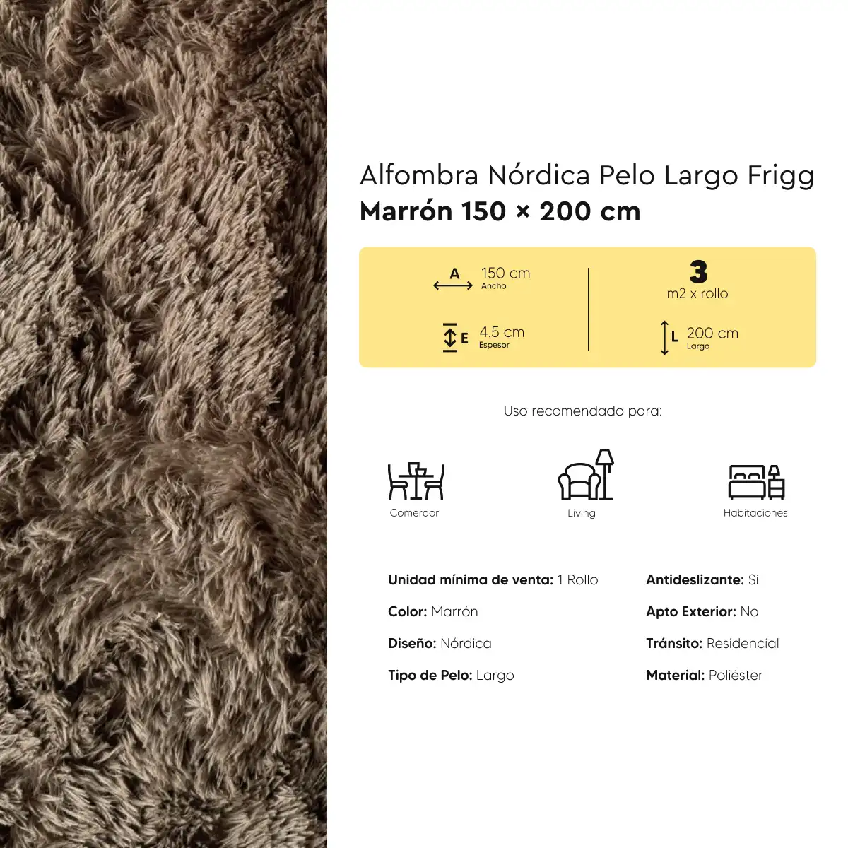 Alfombra Nórdica Pelo Largo Frigg Antideslizante Marrón 150×200 cm