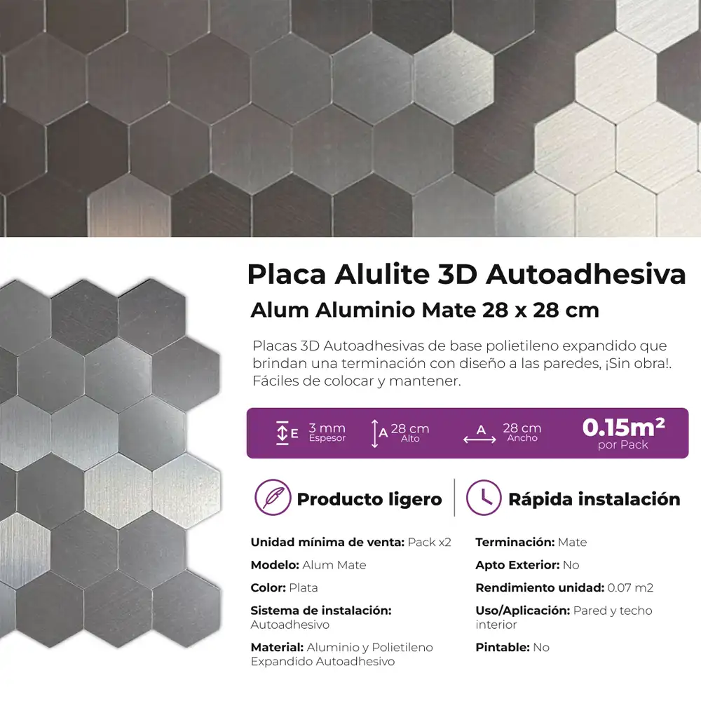 Las Placas Alulite Autoadhesivas de Aluminio de fácil instalación son ideales para aplicar en ambientes residenciales y comerciales de interior. Además, su fabricación de aluminio con PVC y polietileno expandido autoadhesivo aporta elegancia y versatilidad a tus espacios.