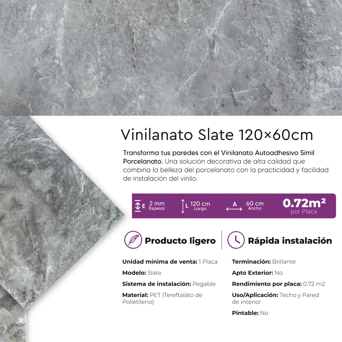 Caja Vinilanato Decorativo Autoadhesivo 60×120 Slate 10.8 m²