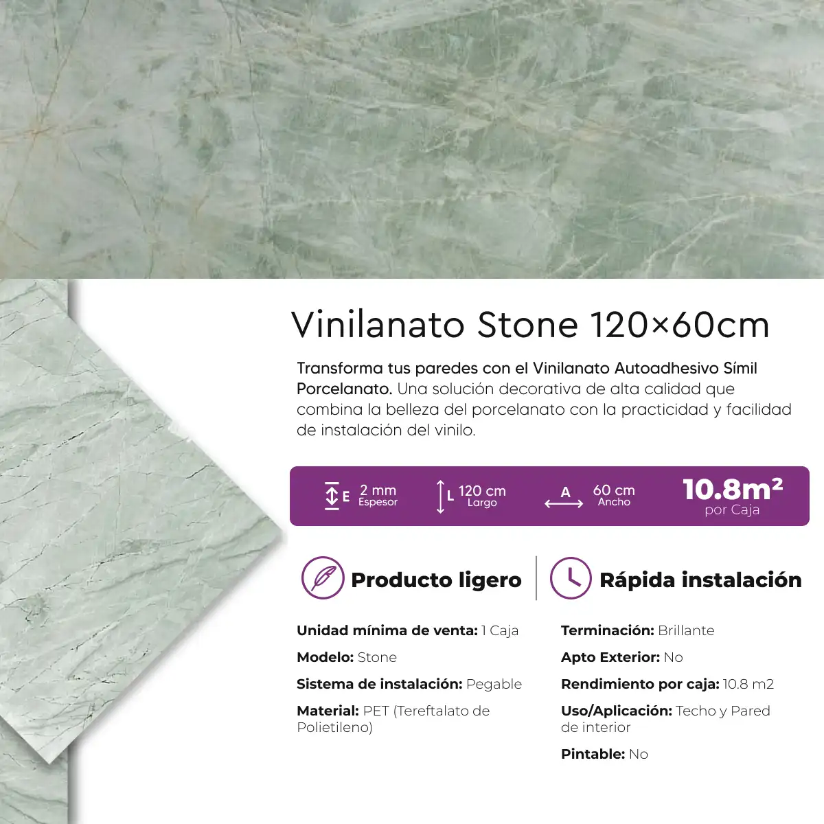 Caja Vinilanato Decorativo Autoadhesivo 60×120 Mármol Stone 10.8 m²