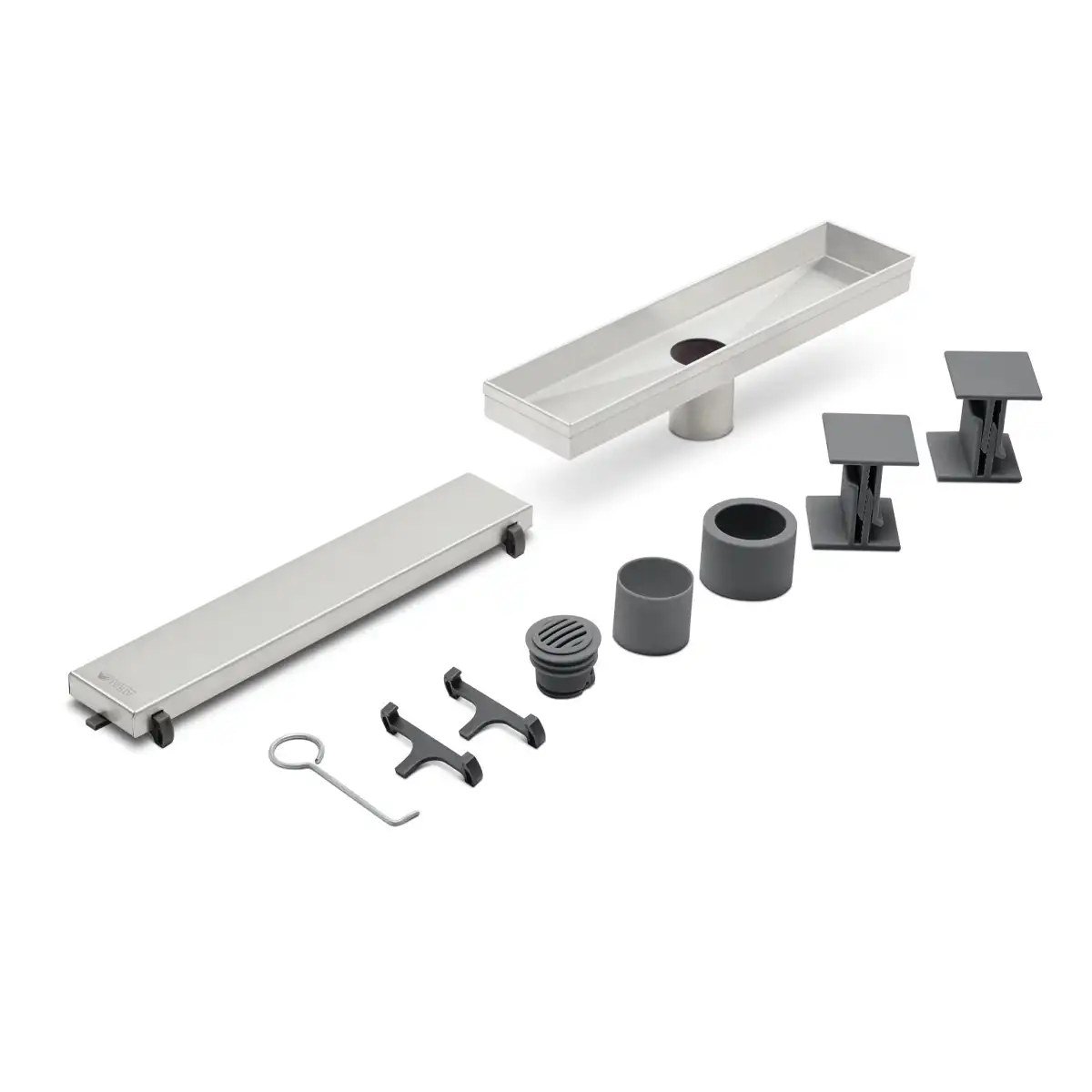 - Desagüe lineal fabricado en acero inoxidable AISI 304.