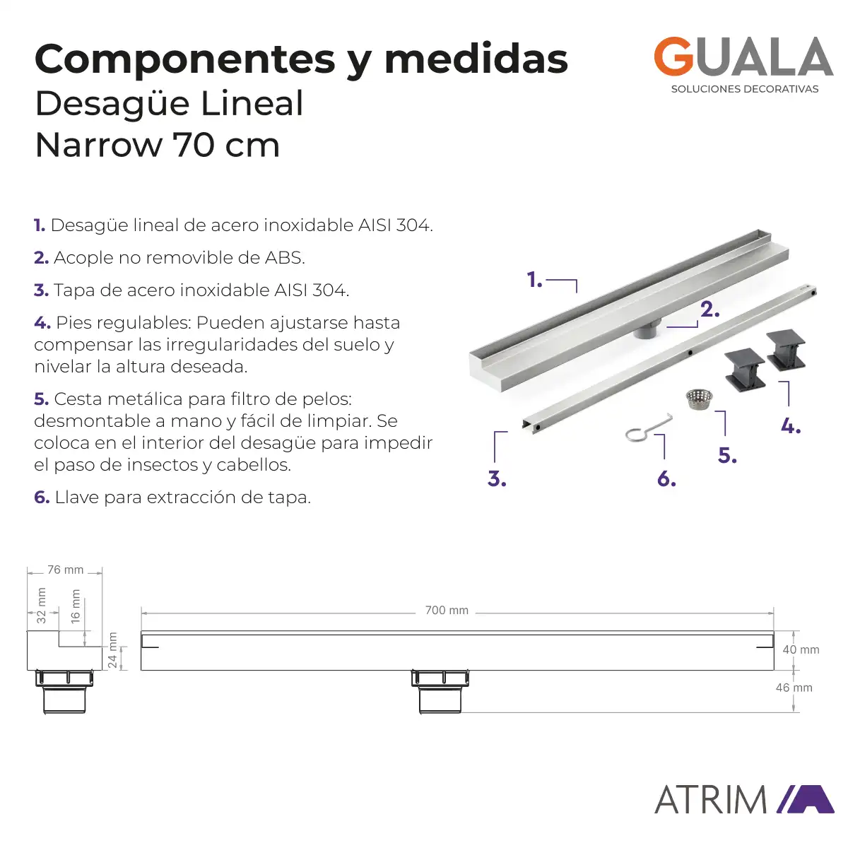 Desagüe Lineal Narrow Atrim 70 cm Acero Inoxidable Mate