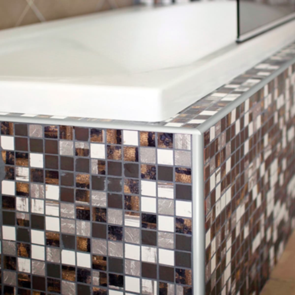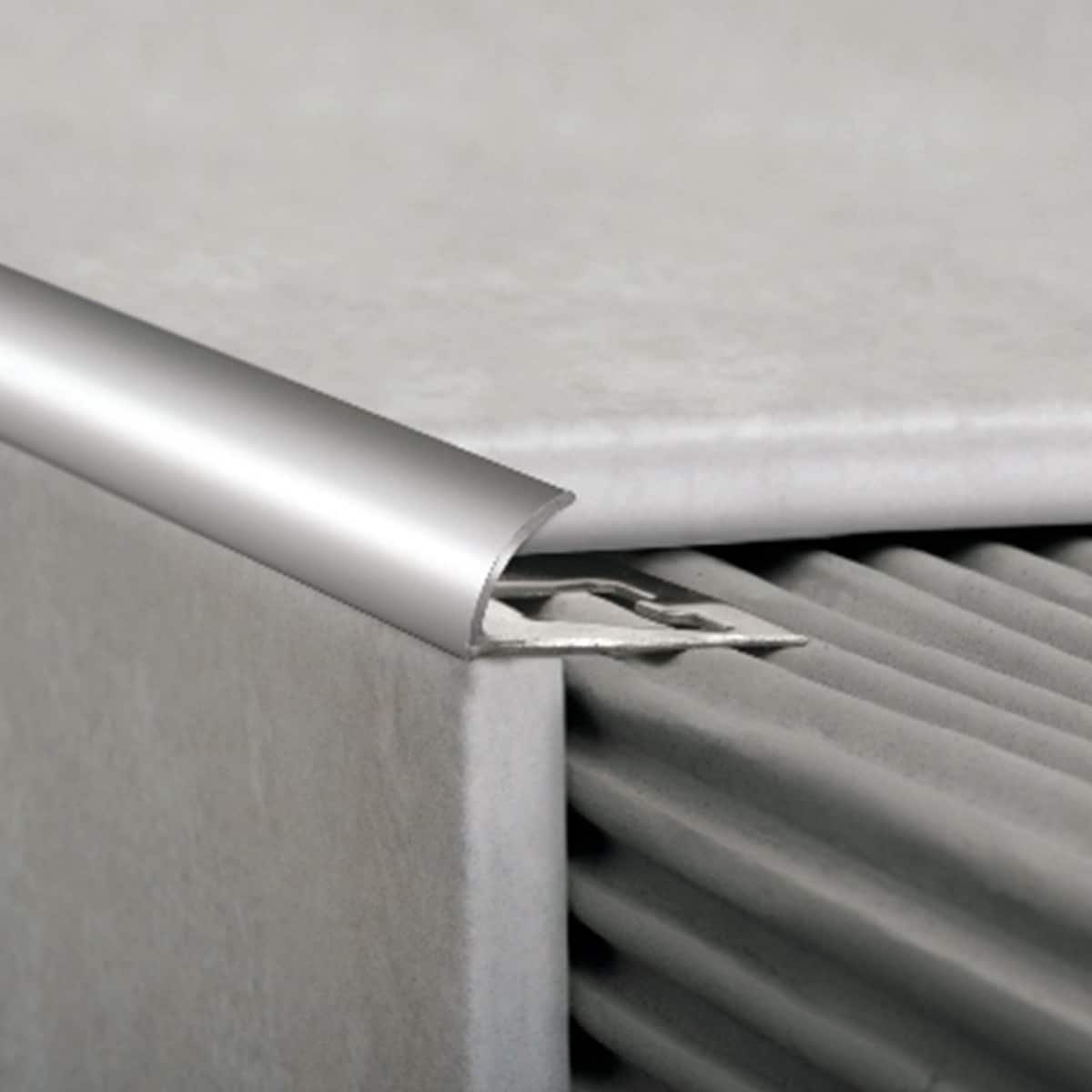 Guardacanto curvo sin aristas de 10 mm para la transición prolija entre revestimientos. Puede utilizarse en el encuentro de dos planos o como terminación de revestimiento, cuando éste no llega al cielo raso.