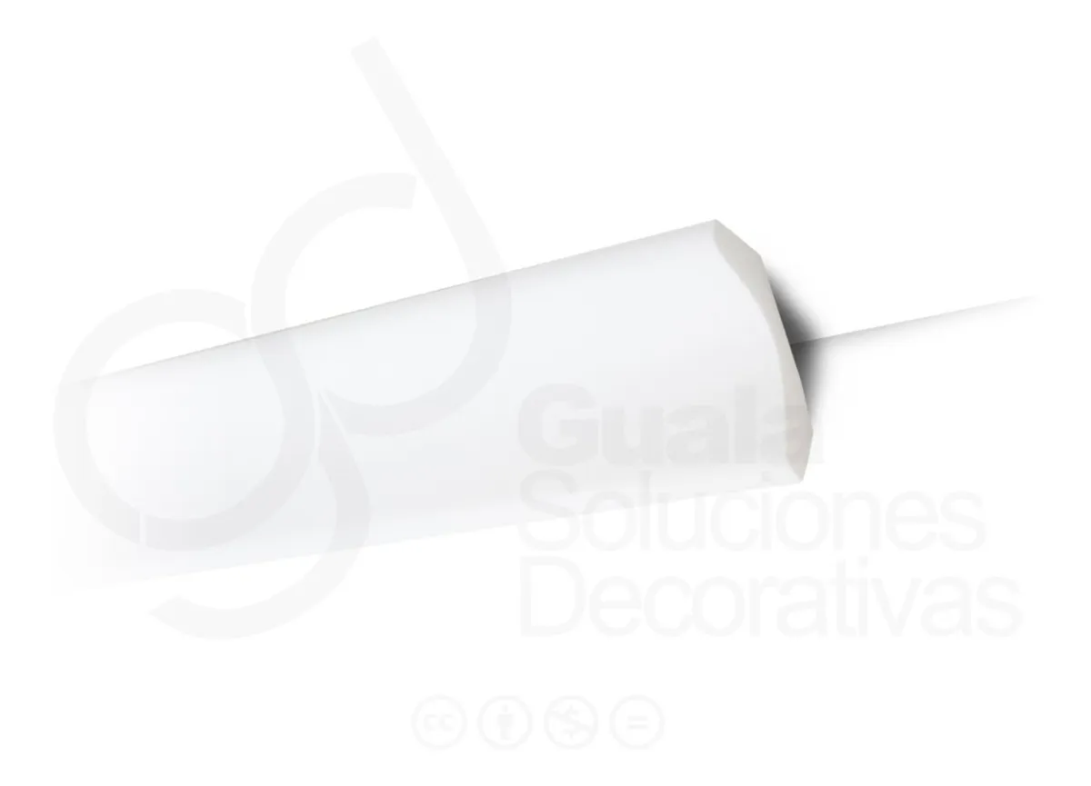 Se coloca con adhesivo para molduras o enduído. Recomendamos cortar las esquinas de empalme con un inglete para molduras y una sierra o cutter.
