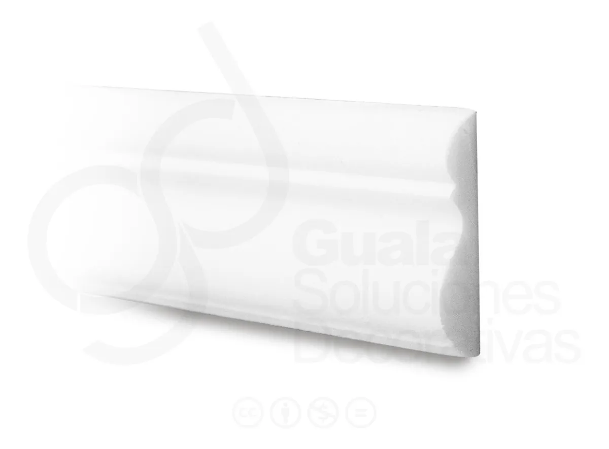 Se coloca con adhesivo para molduras o enduído. Recomendamos cortar las esquinas de empalme con un inglete para molduras y una sierra o cutter.