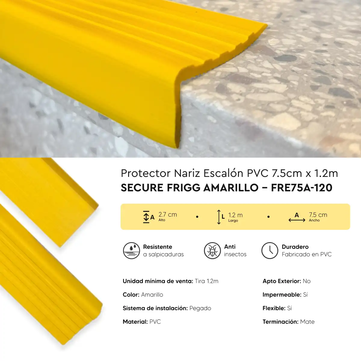 Protector Nariz Escalón Frigg Secure 7.5 cm Perfil de PVC Amarillo 1.2 m