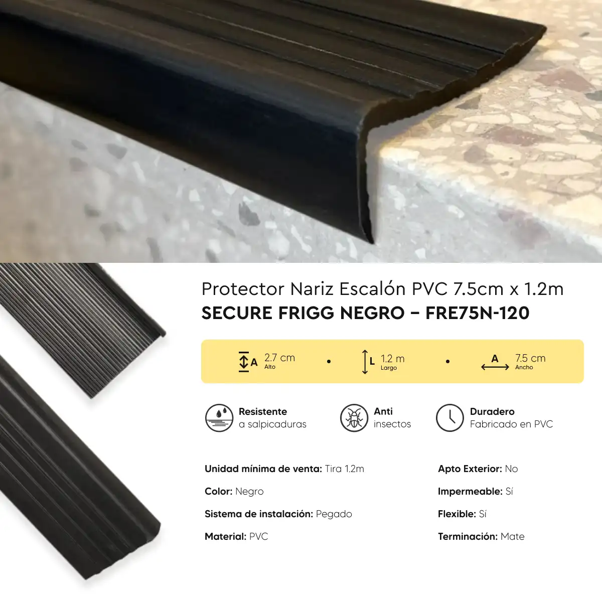 Protector Nariz Escalón Frigg Secure 7.5 cm Perfil de PVC Negro 1.2 m