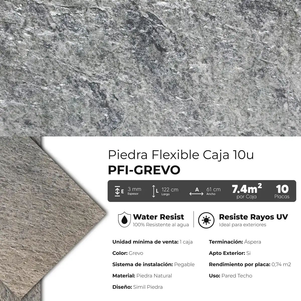 Piedra Flexible Natural 61×122 cm Gris Evora Piedrafina Pack x10
