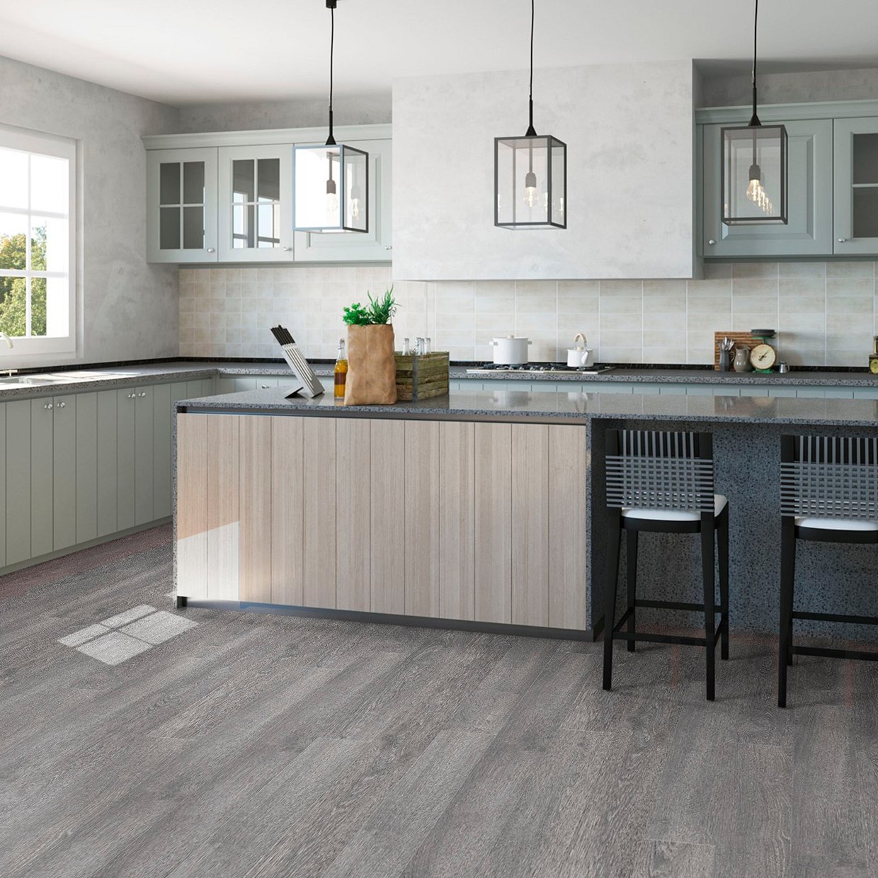 Piso vinílico Kflooring AquaL de SPC de tránsito comercial alto. Su sistema de encastre tipo click permite una instalación fácil y rápida. Resistente al agua.