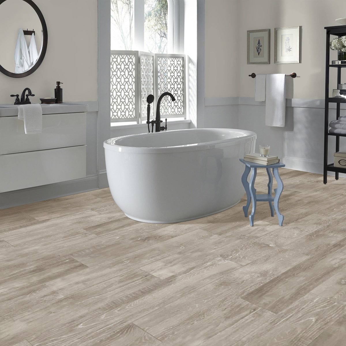 Piso vinílico Kflooring ProStep de SPC de tránsito comercial alto. Su sistema de encastre tipo click permite una instalación fácil y rápida. Resistente al agua.