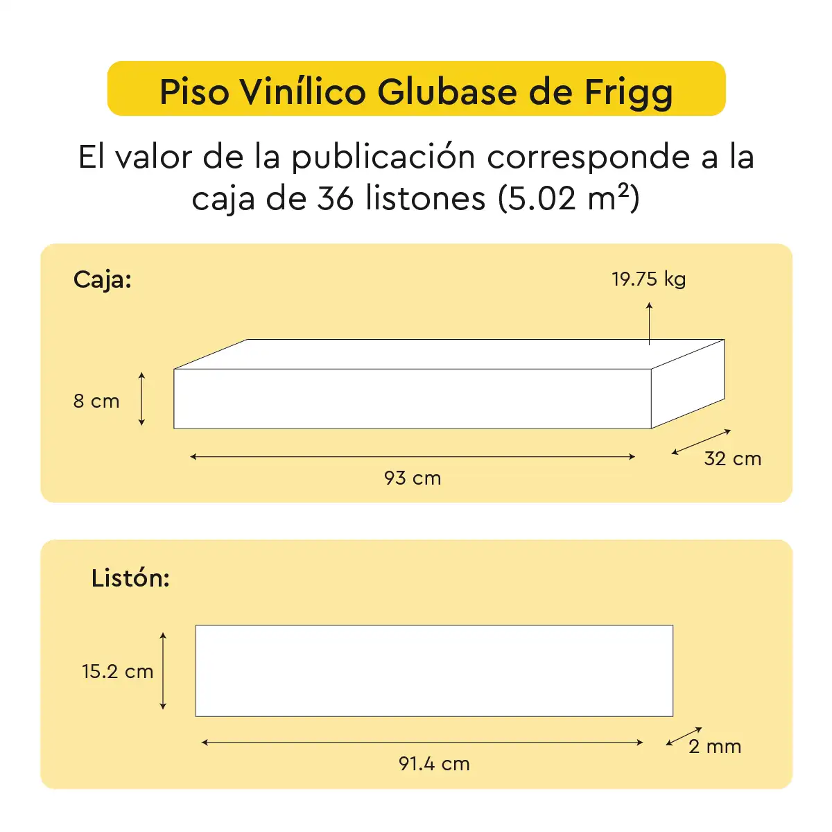 Piso Vinílico Pegable Glubase Listón Lanur 2 mm LVT Tránsito Comercial Frigg 5.02m²