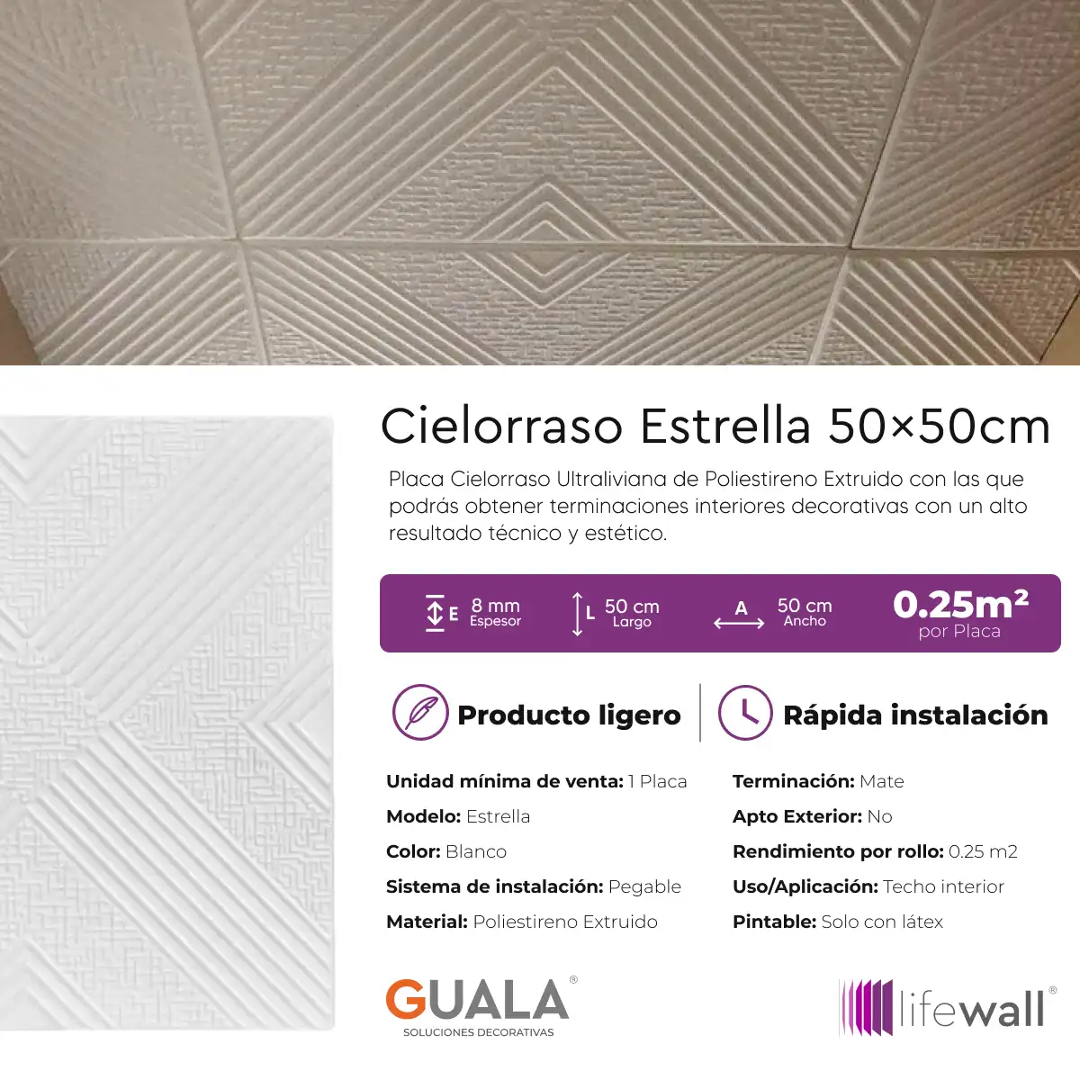 Placa Cielorraso ultraliviana de Poliestireno Extruido con las que podrás obtener terminaciones interiores decorativas con un alto resultado técnico y estético.