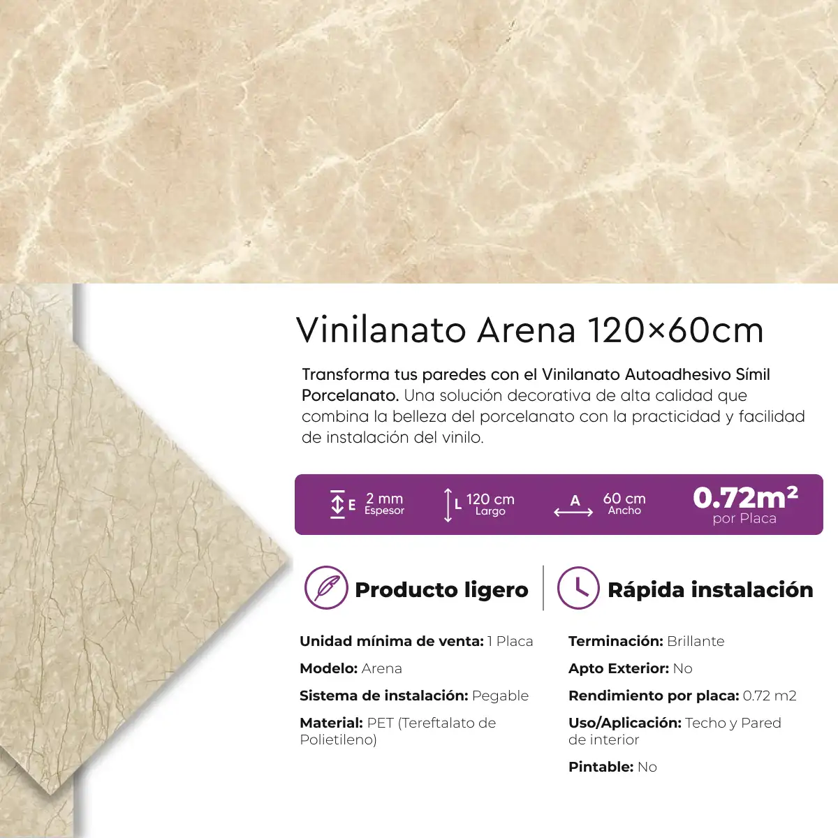 Vinilanato Decorativo Autoadhesivo 60×120 Placa de Mármol Arena