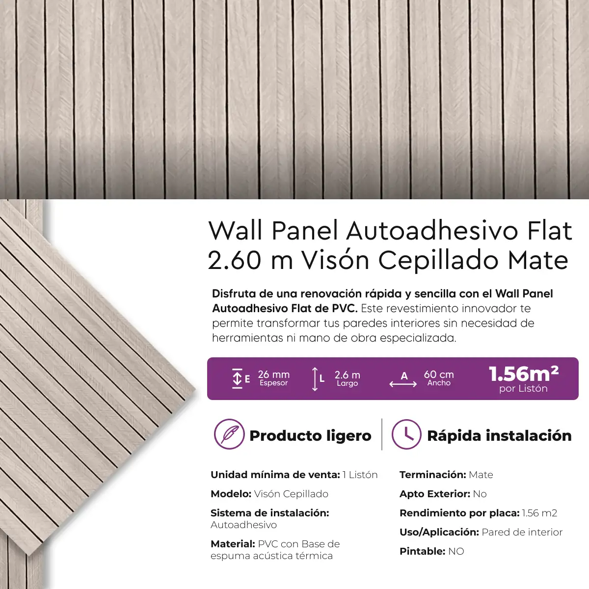 Wall Panel Autoadhesivo Flat Vision Cepillado 2.6 m