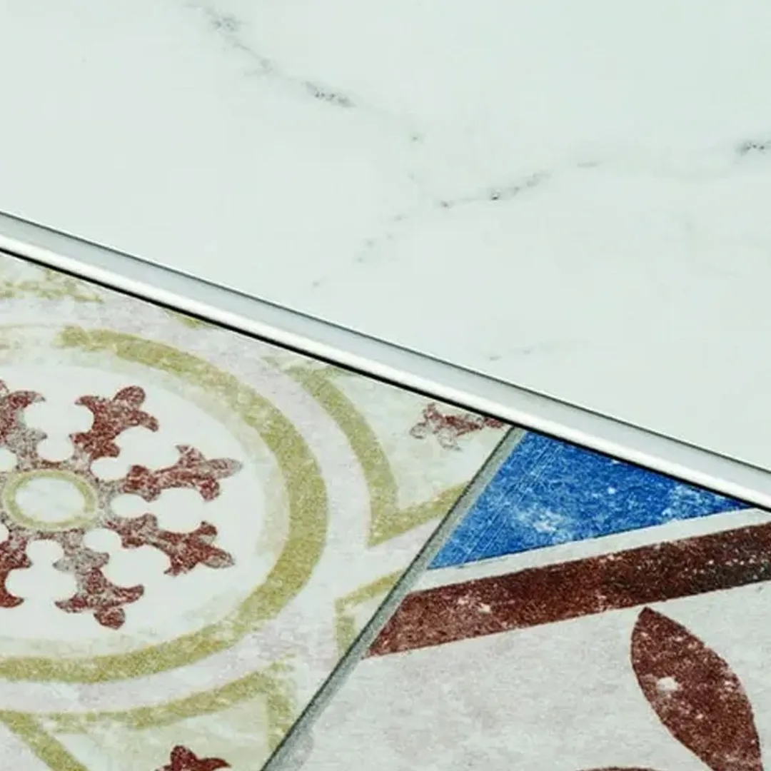 Perfil versátil que puede utilizarse como divisor de pisos en el mismo nivel, para unir diferentes revestimientos a 90 grados, delimitar ambientes o como terminación de escalón protegiendo el canto.