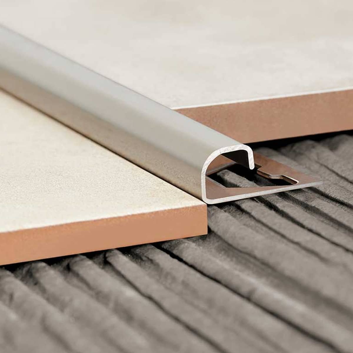 Guardacanto de terminación curva para encuentro entre 2 planos desnivelados