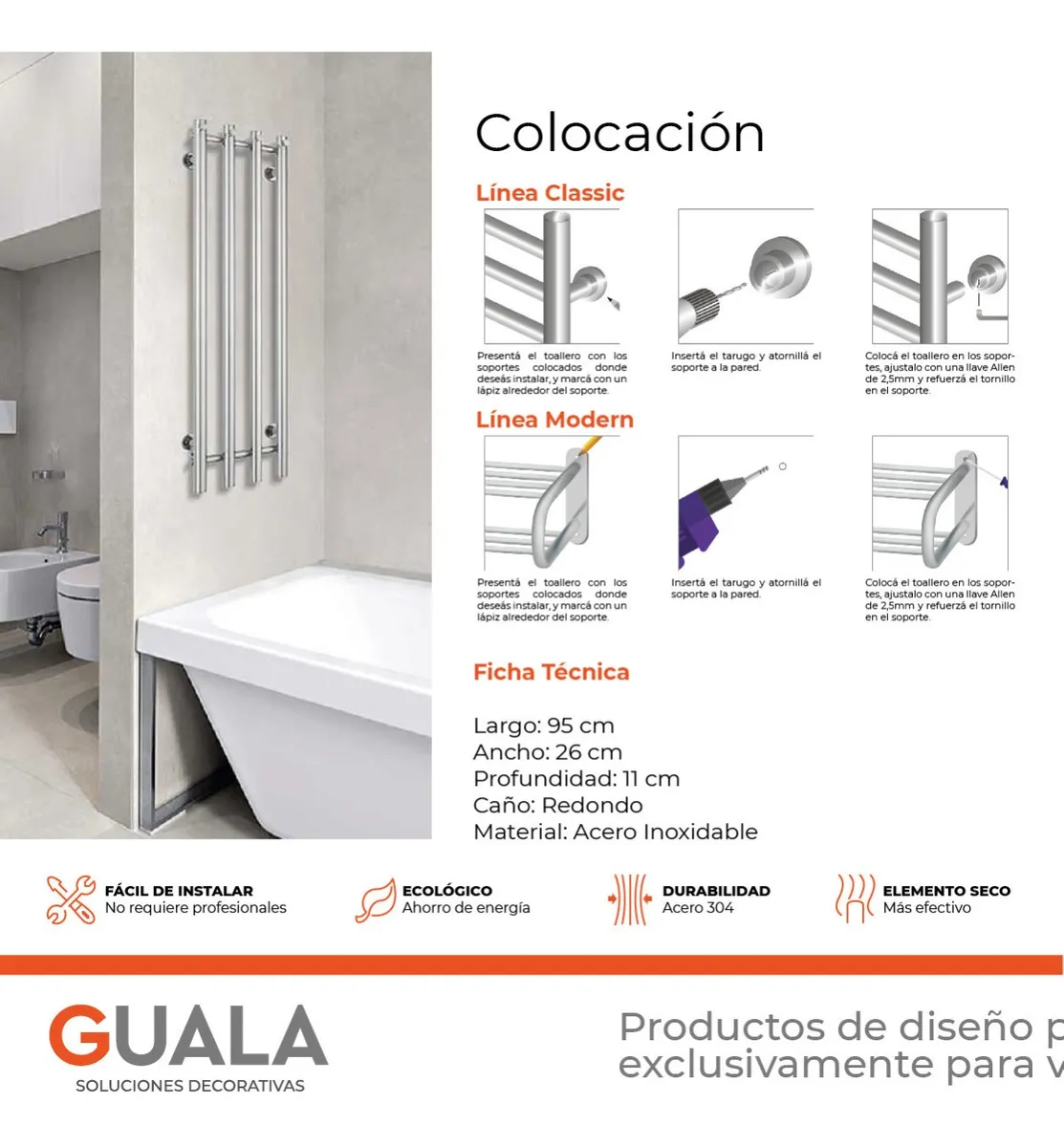 - Mantienen las toallas tibias y secas con un consumo bajo de energía.