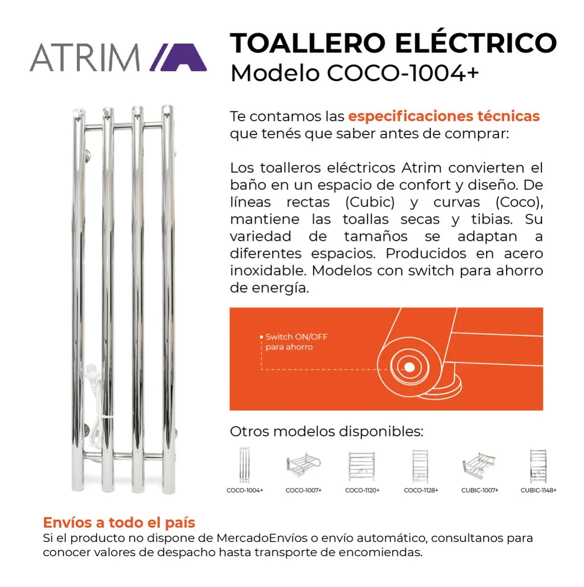 Toallero Eléctrico Atrim Coco 60×70 cm Acero Inoxidable