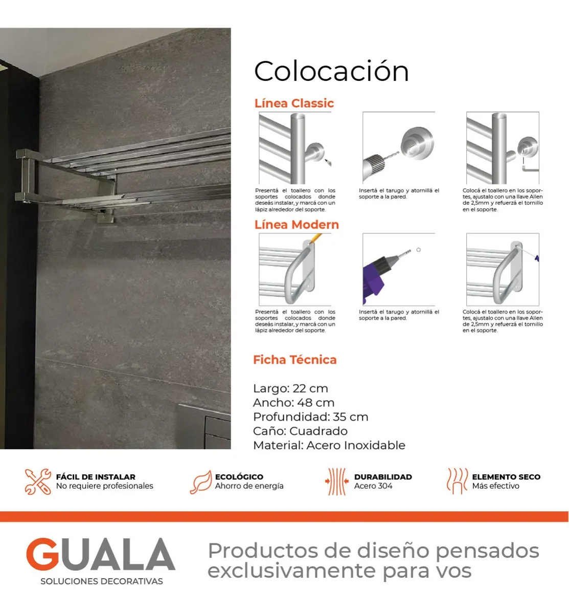 - Mantienen las toallas tibias y secas con un consumo bajo de energía.