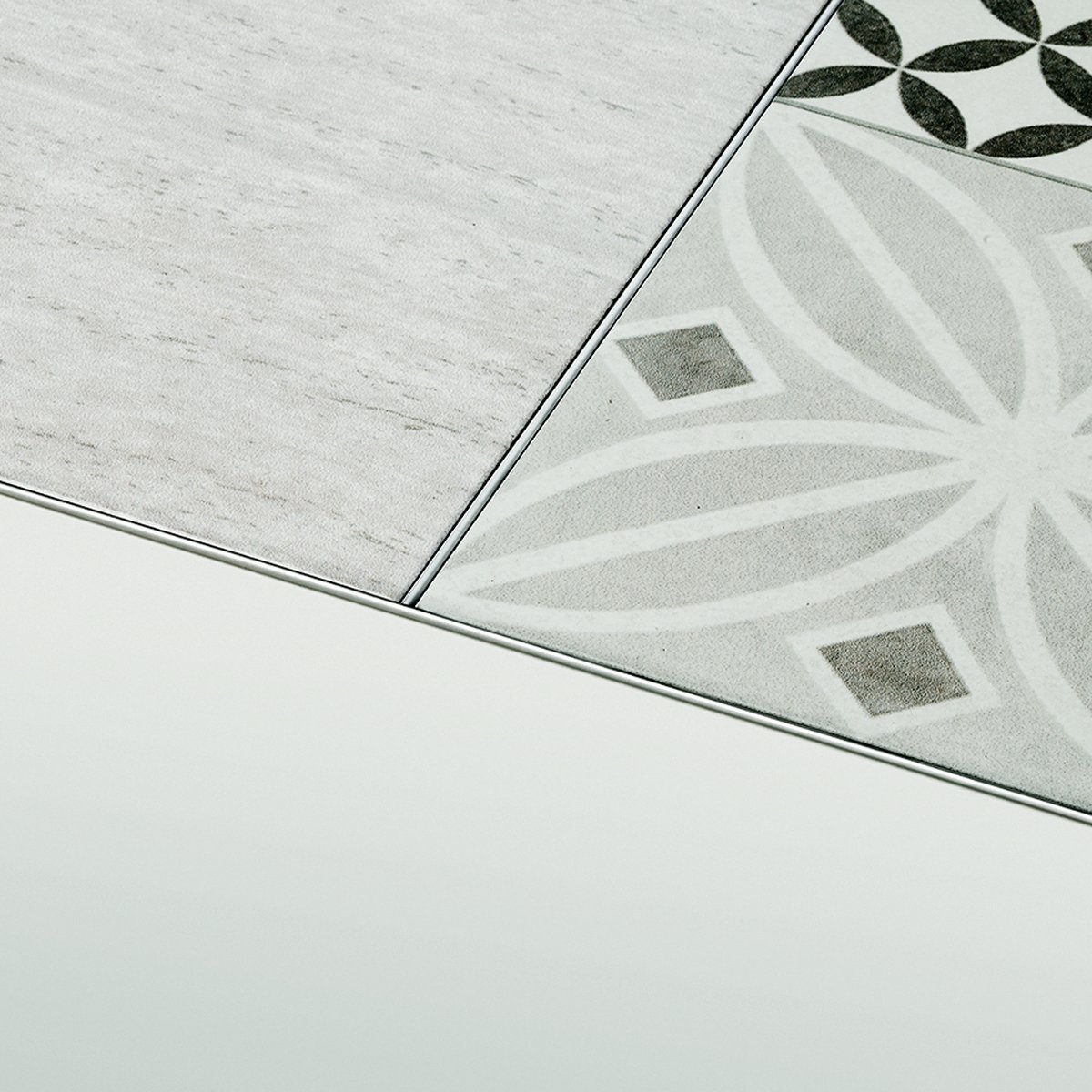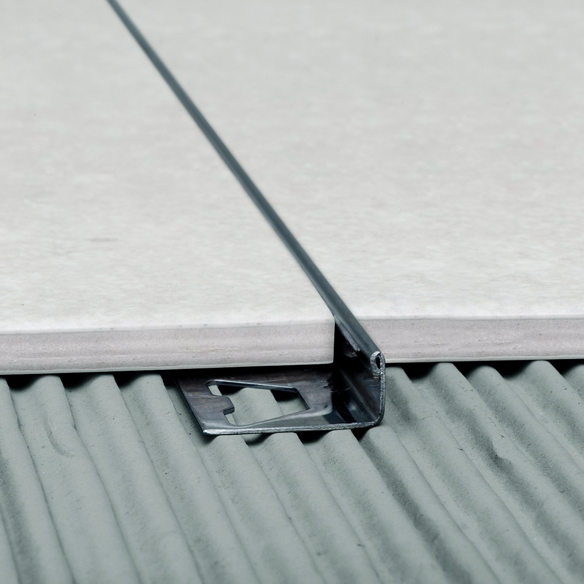 Vista delicada que separa revestimientos diferentes y enmarca áreas en el piso, creando líneas sutiles y minimalistas.