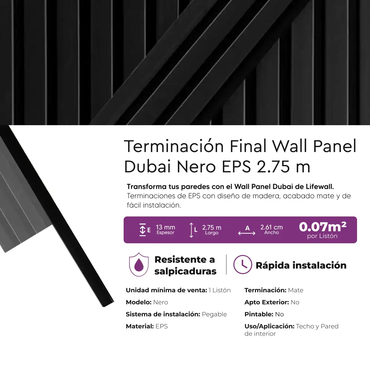 Terminación Final Wall Panel Dubai Nero EPS Mate 2.75 m