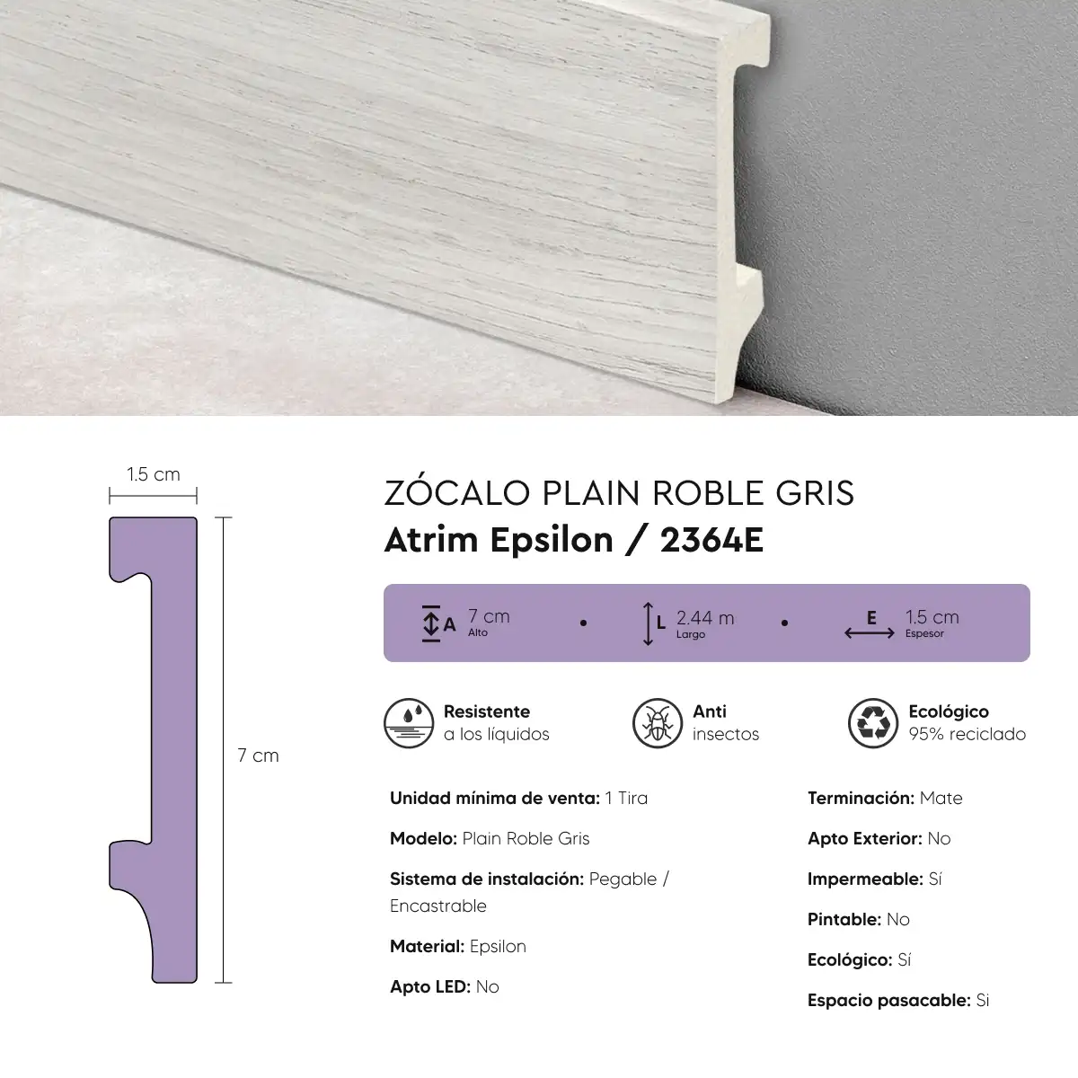 Zócalo Atrim Epsilon Plain 7 cm Roble Gris 2.44 m