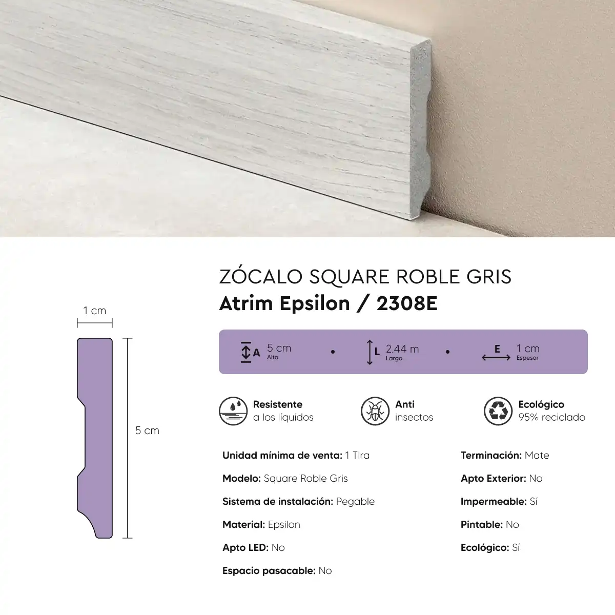Zócalo Contramarco Atrim Epsilon Square 5 cm Roble Gris 2.44 m