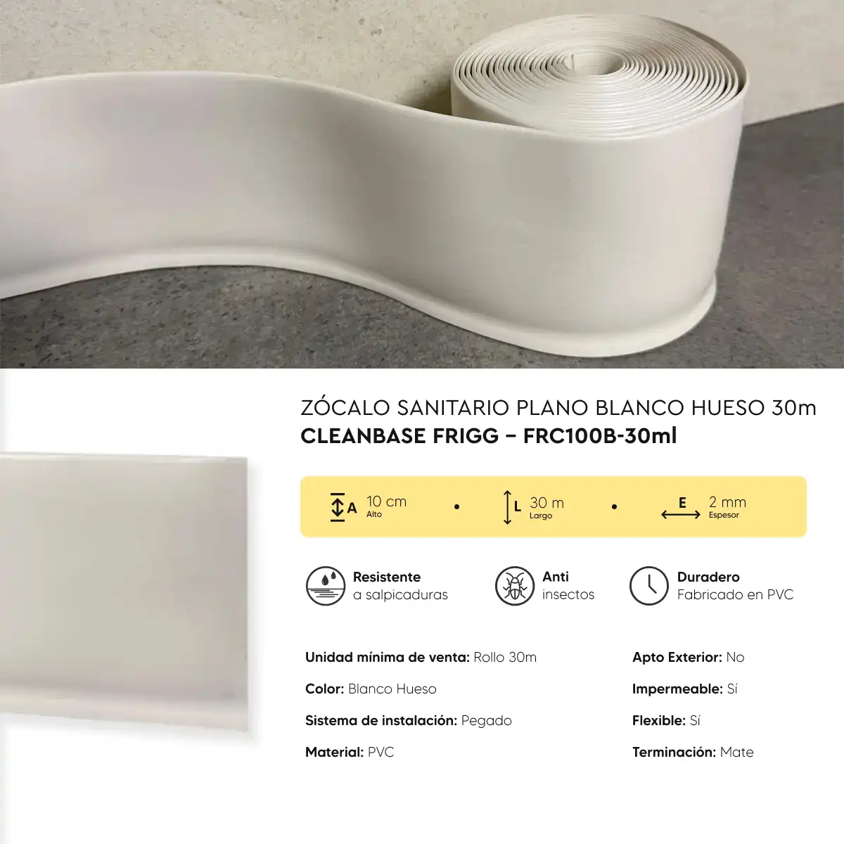 Zócalo Sanitario Plano Blanco Hueso CleanBase Frigg 10 cm 30m