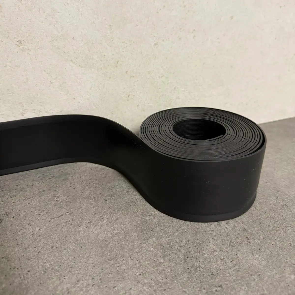 Zócalo sanitario de goma apto para colocar en espacios de higiene. No acumulan suciedad y se pueden limpiar fácilmente con productos de uso común.