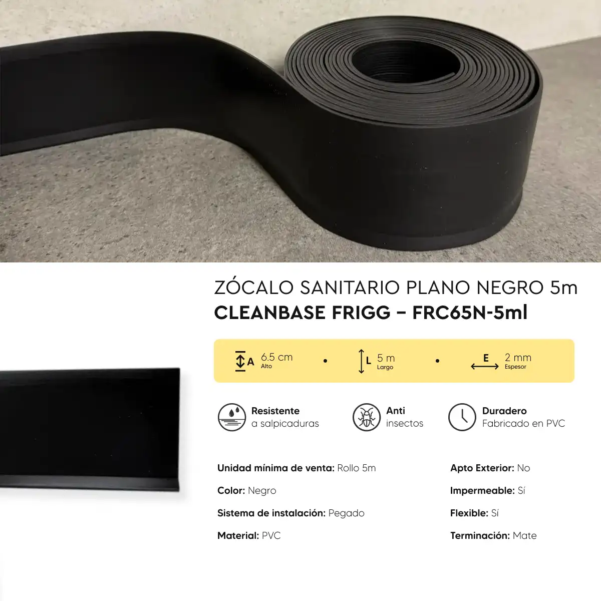 Zócalo Sanitario Plano Negro CleanBase Frigg 6.5 cm 30m